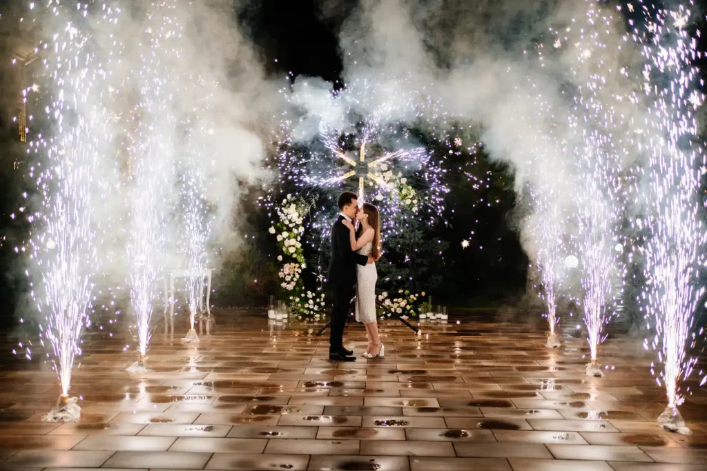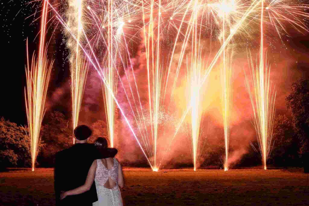 At Aurora Fireworks, your wedding day vision takes centre stage. Choose from a stunning array of bespoke effects and colours, matched meticulously to your wedding theme. Whether it’s a vibrant pyrotechnic extravaganza or our subtle, yet enchanting low-noise displays perfect for venues close to residents or livestock, we customise every aspect of the show.