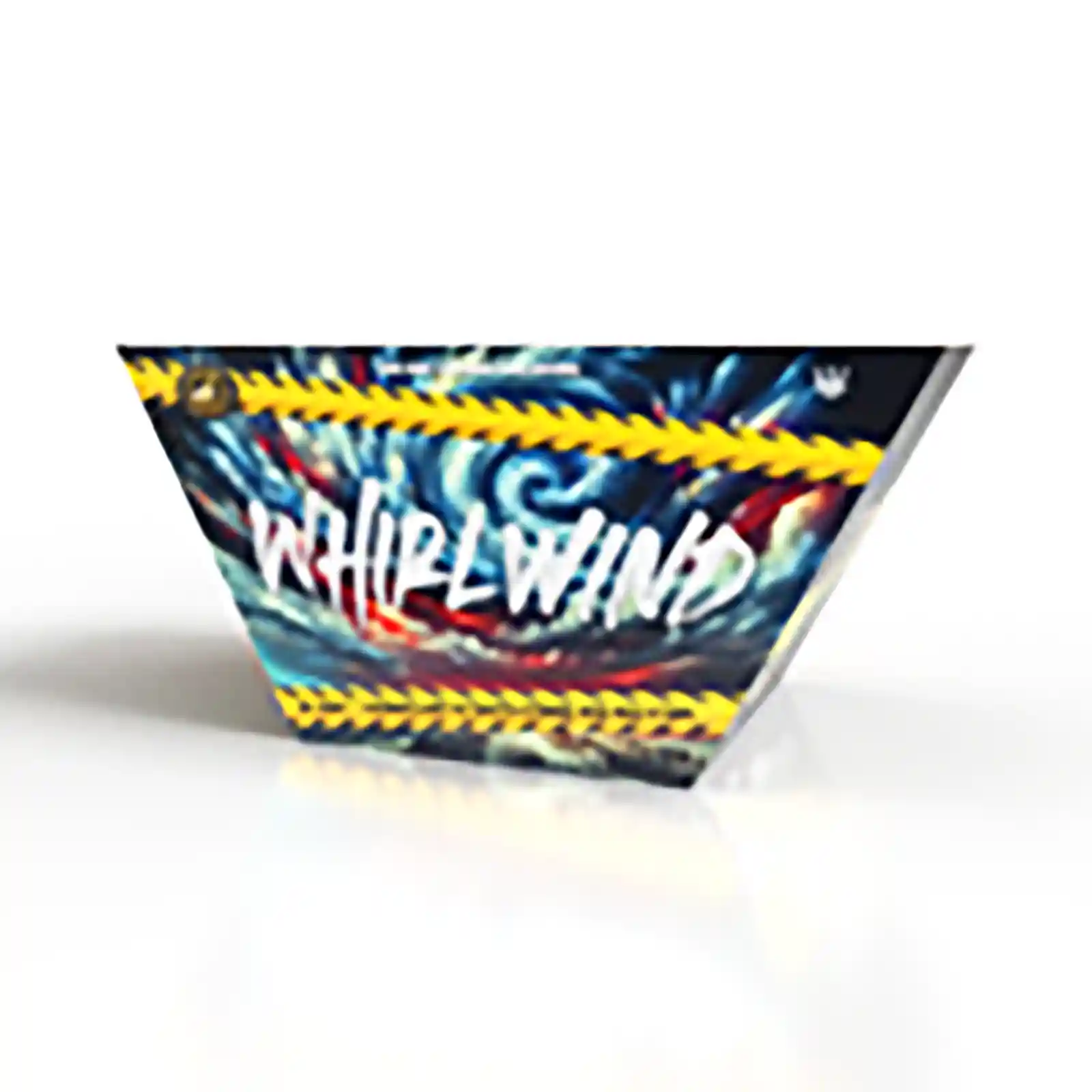 Discover Whirlwind by Dynamic Fireworks — a thrilling 25-shot F3 firework with fan-shaped tourbillon, white strobes, and red stars. Enjoy 25 seconds of dynamic pyrotechnic brilliance with a safe 25-metre distance. Perfect for unforgettable fireworks shows!
